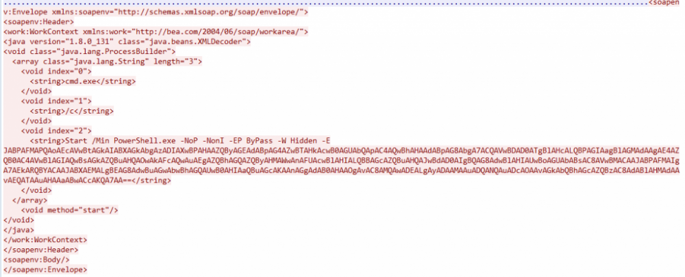 攻击者在其请求中包含了PowerShell命令,且进过base64加密: