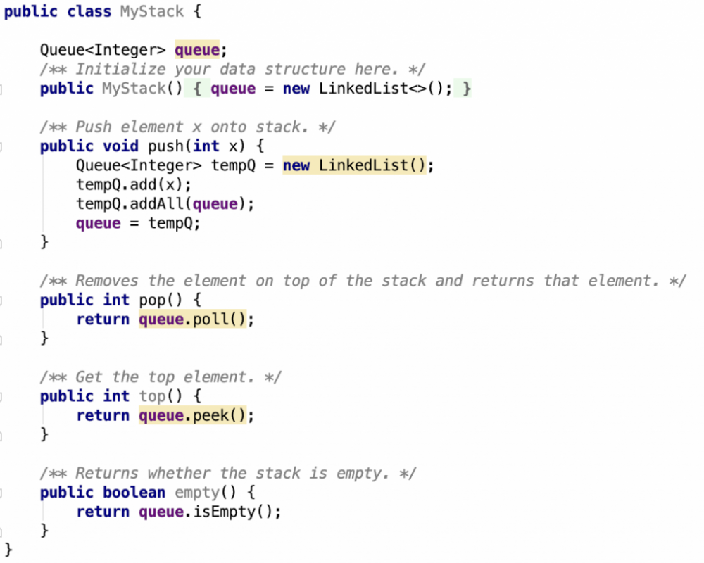 Github 地址: https://github.com/tinyfool/leetcode/tree/master/src/p0225