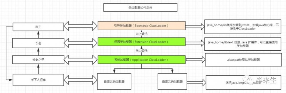 通过这个图我们可以了解到我们的小故事中与我们Java中的类加载器的对应关系。