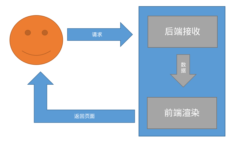 当我们发送一个请求的时候,直接先发给后端处理,后端处理完成后将数据发送给前端,然后前端渲染,再交给用户,所以有了模板引擎这个东西,例如 jsp、thymeleaf、freemarker 这些,都是这样的流程。而这些个东西最为重要的就是 session,你可以通过存储在 session 里面的东西对他进行授权/认证等操作,大概如下: