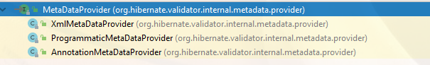 三个实现类对应着上面所述的三种元数据类型。本文很显然只需要关注和注解相关的: AnnotationMetaDataProvider
