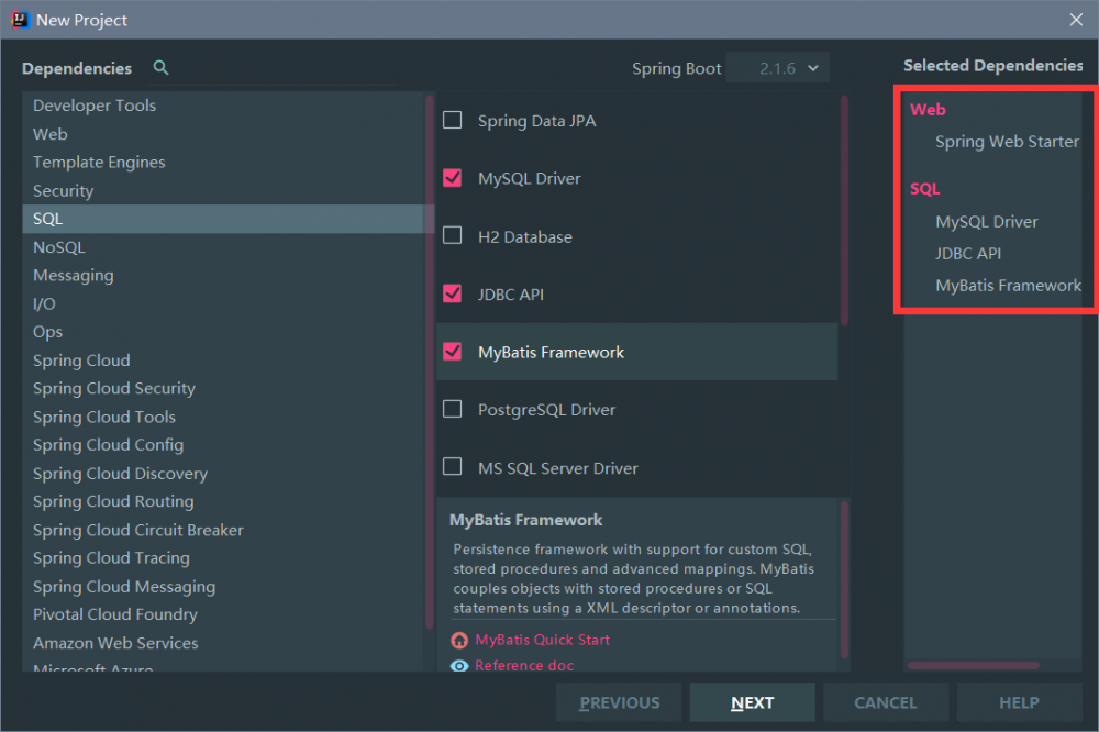 如果你勾选了 MyBatis , 你会发现你的pom文件里有 :