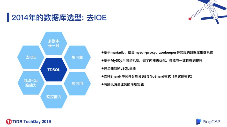 但同时也遇到一些瓶颈。因为我们采用的是单实例的部署模式,对于有些无法通过 DCN 拆分进行扩展的业务场景,单实例的性能和容量就很容易到达瓶颈。 当然,TDSQL 也提供了 TDSQL-Shard 模式,也就是通过中间件分库分表的方式把一个表 Shard 之后再处理,但我们当时评估之后认为该模式对应用的侵入性比较大,比如所有的表必须定义 shard-key,有些语法可能不太兼容,有些分布式事务的场景可能会有瓶颈,进而导致业务迁移的成本会比较高。