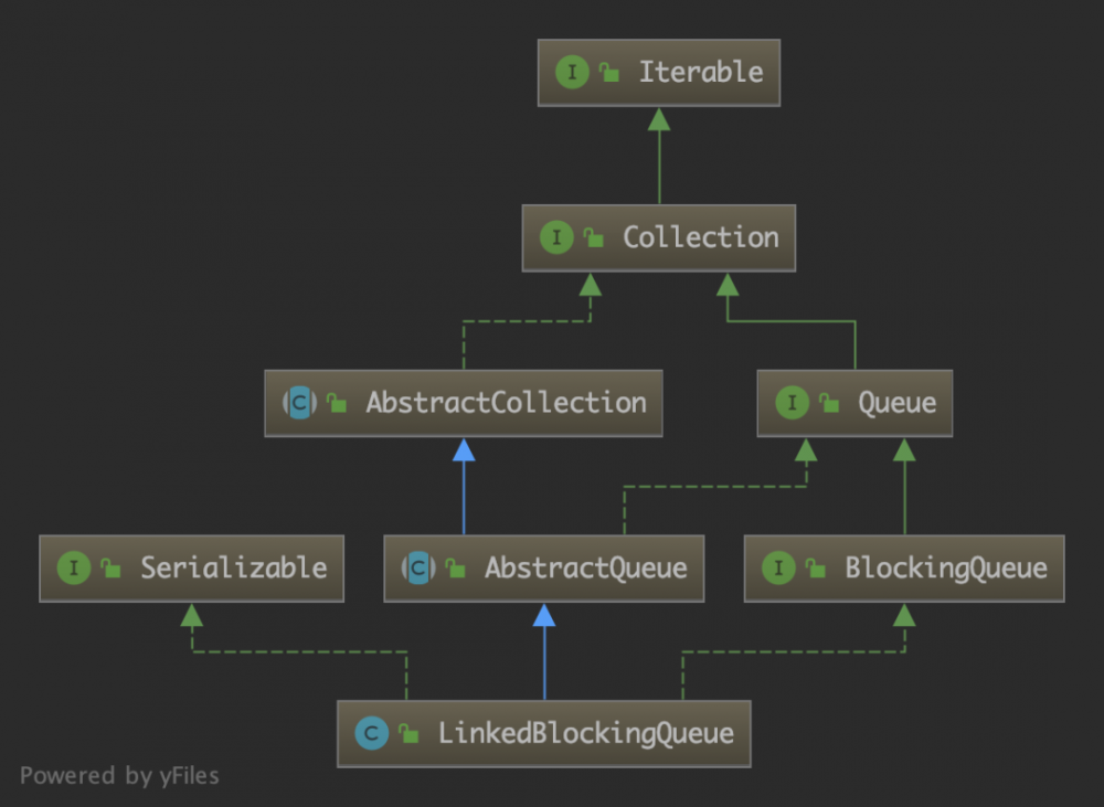 前文「 JDK源码分析-ArrayBlockingQueue 」分析了 ArrayBlockingQueue 的代码实现,LinkedBlockingQueue 也是阻塞队列的实现。与前者不同的是,后者内部是由链表实现的。