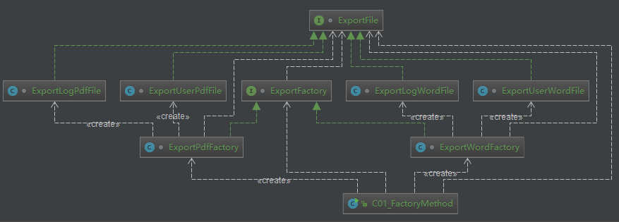 这个角色实现了抽象导出角色所声明的接口,工厂方法模式所创建的每一个对象都是某个具体导出角色的实例。