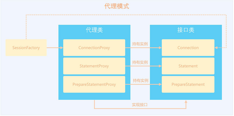 Java中SQL监控一般通过代理模式实现,如下: