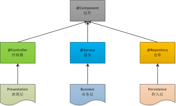 SpringMVC服务端采用经典的三层架构,即表现层、业务层、持久层,分别采用@Controller、@Service、@Repository进行类注解。