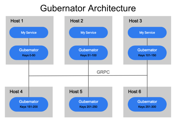 Gubernator 是无状态的,因为它不需要磁盘空间来操作。不需要任何配置或缓存数据同步到磁盘,这是因为对 Gubernator 的每个请求都包含速率限制的配置。
