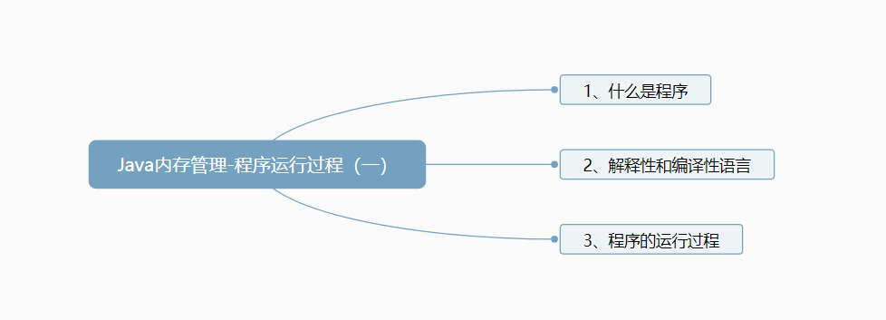 在说Java程序运行的过程中,不得不说的三个组件: Java程序、Java虚拟机和操作系统。Java程序的运行是需要JVM的,JVM又要与操作系统交互获取内存和释放内存。这里通过三个阶段来说明一下之间的关系以及程序运行过程中内存分配是如何分配的。