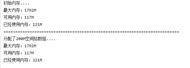System.out.println("分配了200M空间给数组....");