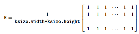 使用归一化块滤波器模糊图像,方法平滑图像使用的kernel如下: