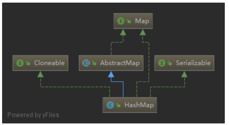 HashMap继承自AbstractMap,实现了Map接口,具有Map的所有功能。