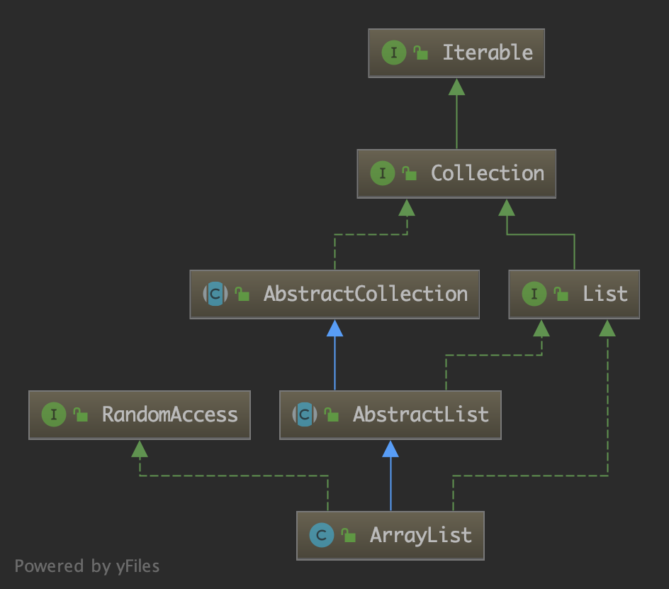 ArrayList 的继承结构如下(省略部分接口):