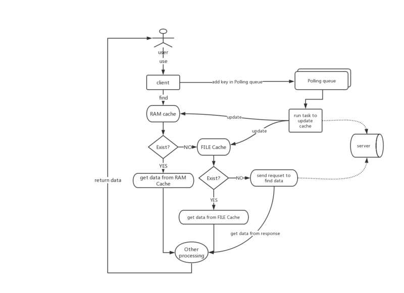 - 当缓存的存在的时候, 将缓存的数据添加到轮询队列中,等待下一次异步同步更新
