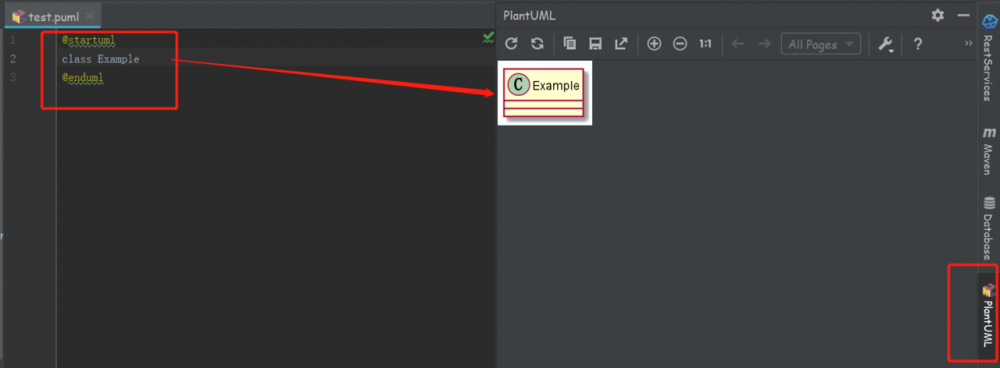 然后重启 IDEA , PlantUML 标签窗口就能根据你输入的 PlangUML language 实时绘图了