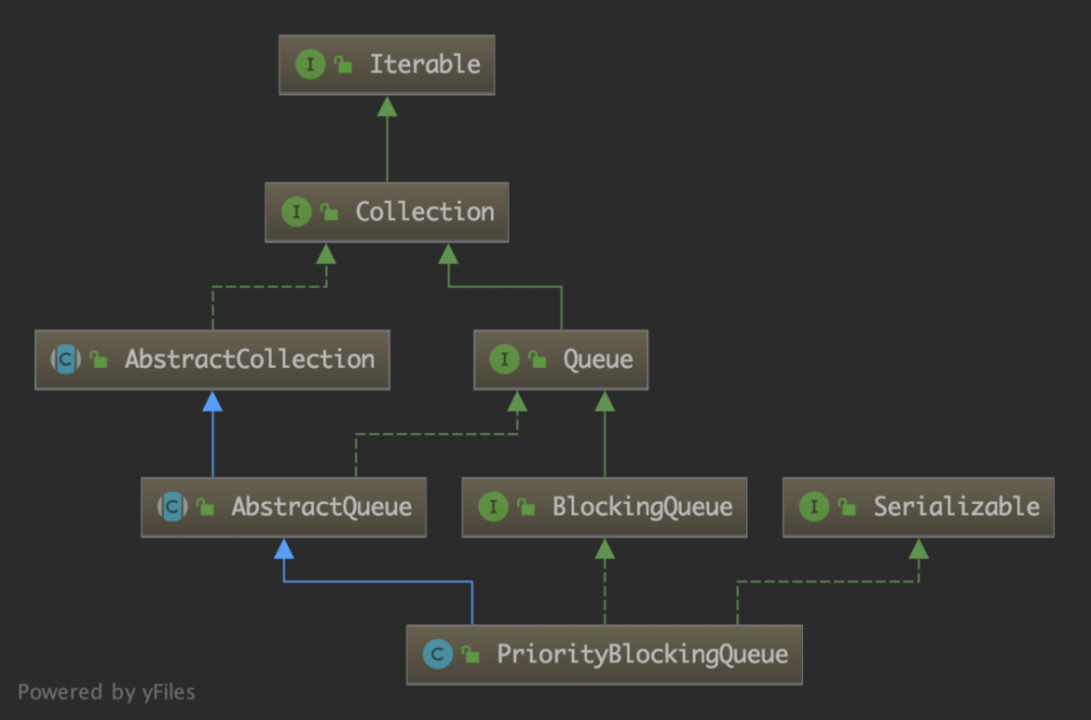 前文「 JDK源码分析-PriorityQueue 」分析了优先队列 PriorityQueue,它既不是阻塞队列,而且线程不安全。本文分析线程安全的阻塞优先队列 PriorityBlockingQueue。它的继承结构如下: