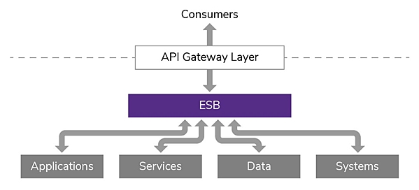 大多数采用 SOA 的企业都会使用 ESB 作为中心总线,以连接和集成所有独立的 API、服务、数据和系统。
