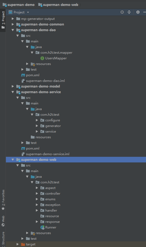 为了激发阅读兴趣,先放一张使用自定义archetype生成项目的项目结构图