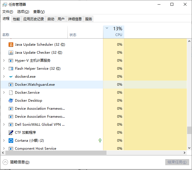 window中打开任务管理器,可以看到当前系统中正在运行的进程,如下图: