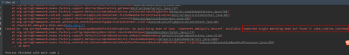 此时又带来了新的歧义性问题,因为Spring又不知道该如何选择了,运行代码会抛出 org.springframework.beans.factory.NoUniqueBeanDefinitionException 异常,如下所示: