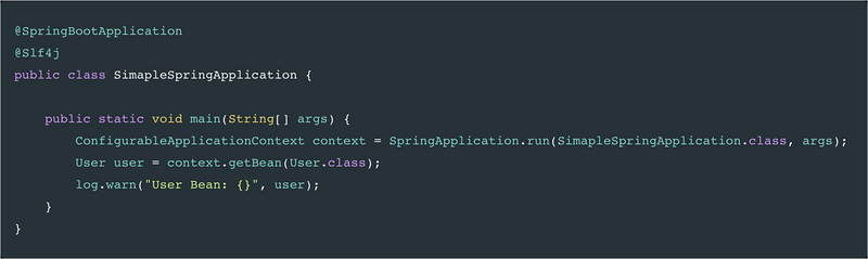 有了配置文件之后,启动 SimapleSpringApplication 程序,我们首先可以看到日志输入: User Bean: User(name=one) ,由此可以看出程序读取了 application.properties 的 user.username 配置。现在我们在 application.properties 中加入一行: