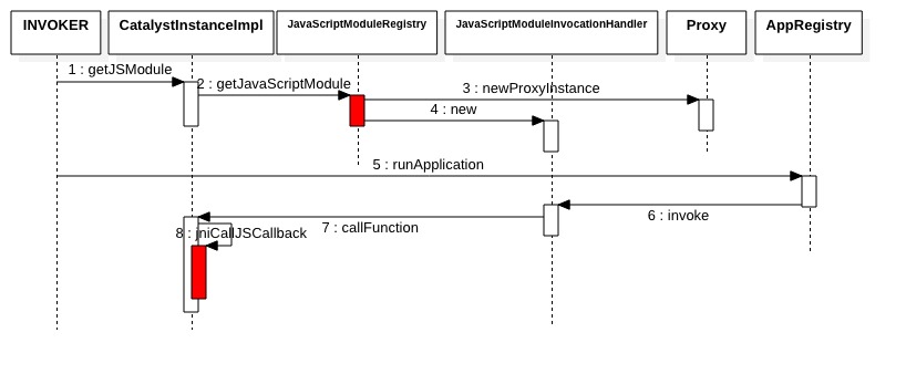 JavaScriptModuleInvocationHandler的回调函数invoke主要是调用CatalystInstance的callFunction函数,完成调用。