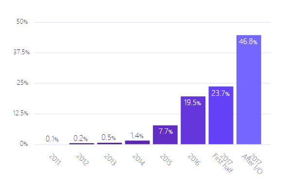 早在 2018 年,Pusher 就发起了一项 开发人员调查 ,发现 Kotlin 的使用量正在天文数字般的增长,这很大程度上是因为 Android。Pusher 补充说明: