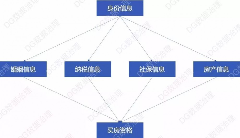 小明打算在有生之年买一套北京二环内的房子,相关机构需要分析小明是否有买房资格,这是 业务需求 ;那么为了分析小明的买房资格,最起码需要小明的身份数据、婚姻数据、在京纳税数据、在京缴纳社保数据、在京房产数据,这些是 数据需求 ;为了有效获取并集成这些数据,以实现相关机构分析小明买房资格的业务需求,我们需要下图所示的 数据架构 (注:此处只是简单例子,企业真实数据架构含有很多组件,会复杂很多)。