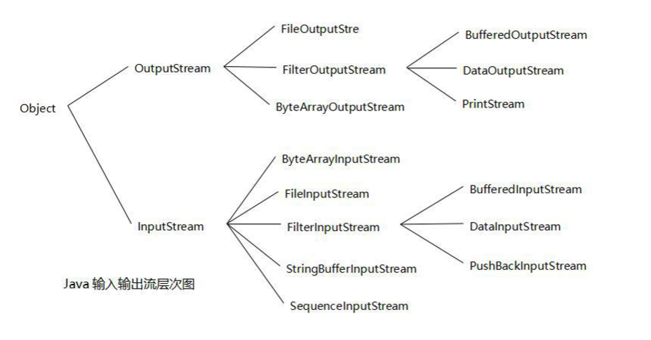 分为 字节输入流 InputStream 字节输出流 OutputStream 字符输入流 Reader 字符输出流 Writer 所有流都是这四个流的子类 复制代码