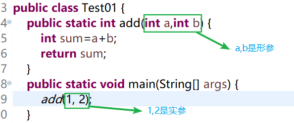 形式参数:是在定义函数名和函数体的时候使用的参数,目的是用来接收调用该函数时传入的参数。