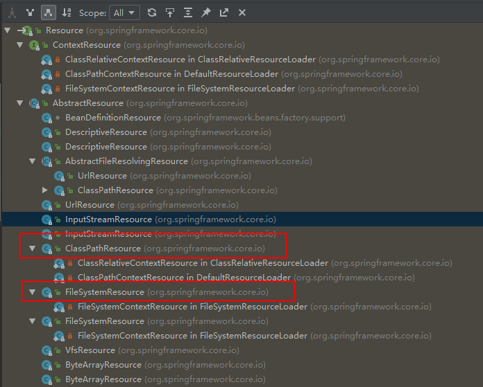 内部的所有资源,包括File,ClassPath,URL都会转化为 Resource