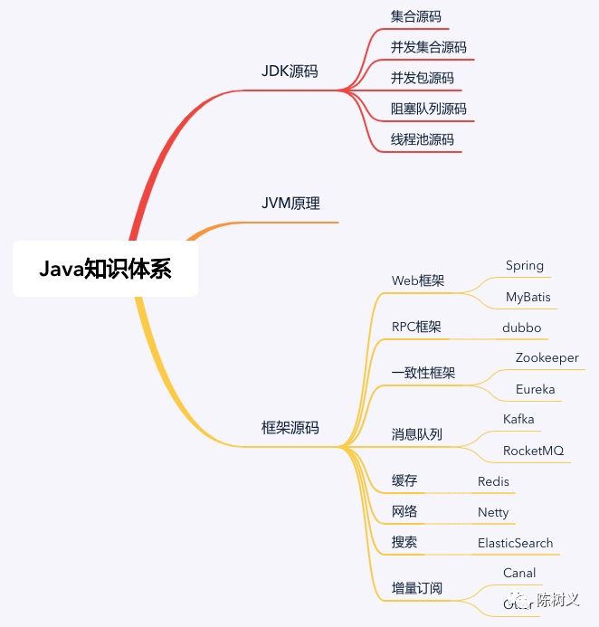 上面的思维导图从上到下都是逐次递进的。我们学习了 JDK 源码,再学习 Web 框架就可以实现简单的 Web 项目。而随着业务增长,我们需要加入 RPC 服务化框架将其服务化。而随着业务复杂化和井喷,我们需要加入消息队列和缓存来进一步提高业务的稳定性。