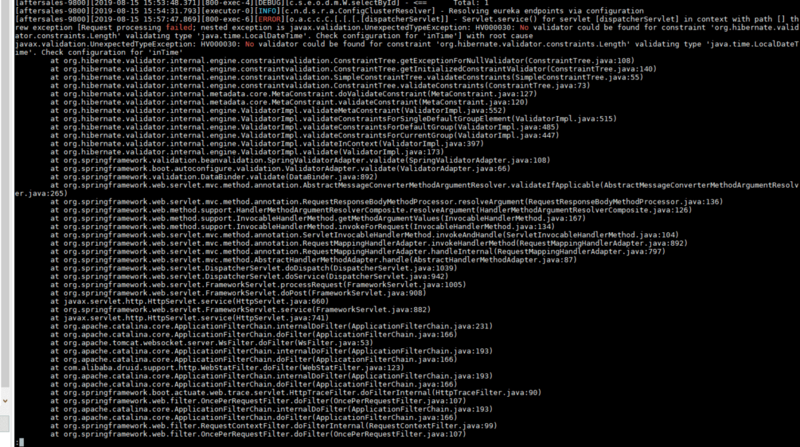 javax.validation.UnexpectedTypeException: HV00030: No validator could be found for constraint 'org.hibernate.constraint.Length' validating type 'java.time.LocalDateTime' . Check configuration for 'inTime'