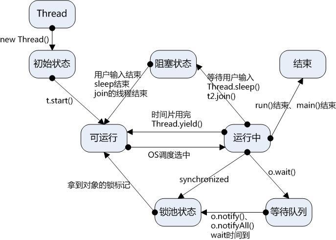结论: yield() 从未导致线程转到等待/睡眠/阻塞状态。在大多数情况下, yield() 将导致线程从运行状态转到可运行状态,但有可能没有效果。可看上面的图。