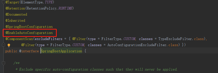 接下去,进入@EnableAutoConfiguration注解中,如下图