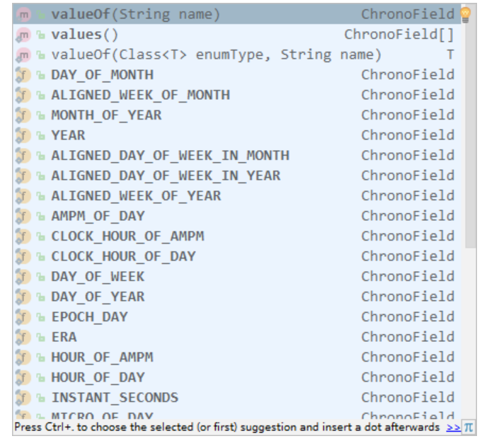 ChronoField枚举类型包含了诸多的属性可供选择: