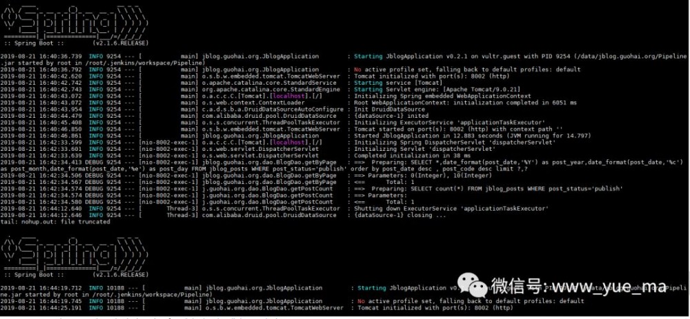 Jenkinsfile仅完成jar传输,真正对站点进行重启操作还靠sh脚本完成。这个过程尝试了好多次,寻找了好久的问题。对原始的spring-boot.sh进行了调整,让其支持指定启动配置文件。