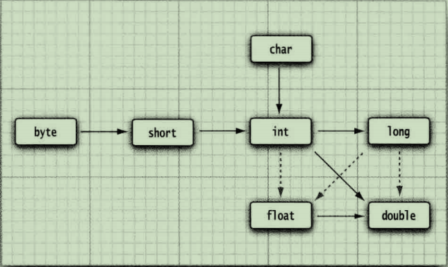 在图中有 6 个实心箭头,表示无信息丢失的转换;有 3 个虚箭头, 表示可能有精度损失的转换。