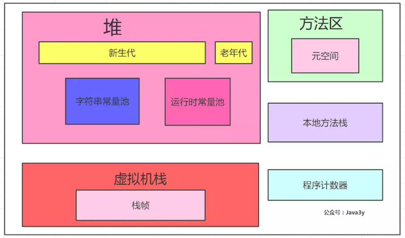 3.虚拟机栈:存放栈帧,每个方法的调用对应着栈帧的压入