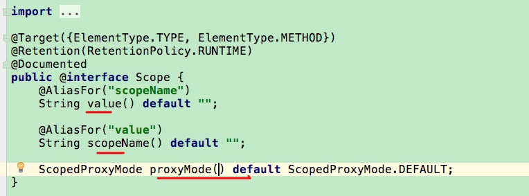 Bean的作用域是通过 @Scope 注解实现的,我们先来看下 @Scope 注解的属性: