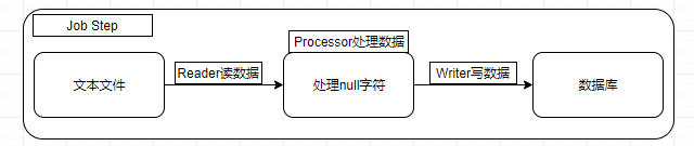 上一篇文章 《快速了解组件-spring batch(2)之helloworld》 对 Spring Batch 进行了入门级的开发,也对基本的组件有了一定的了解。但实际开发过程中,更多的是涉及文件及数据库的操作,以定时后台运行的方式,实现批处理操作。典型操作是从文本数据( csv/txt 等文件)中读取数据,然后写入到数据库存储。如下图所示: