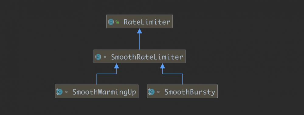 RateLimiter 目前只有一个子类,那就是抽象类 SmoothRateLimiter,SmoothRateLimiter 有两个实现类,也就是我们这边要介绍的两种模式,我们先简单介绍下 SmoothRateLimiter,然后后面分两个小节分别介绍它的两个实现类。