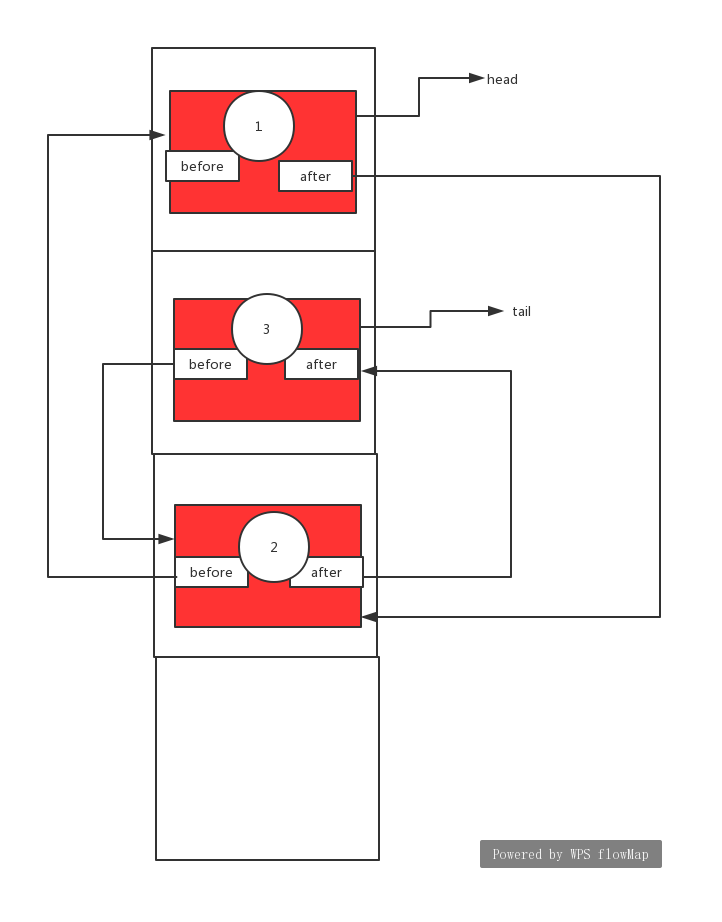 可以看出来是一个双向链表维持了一个顺序,遍历的时候只要知道首尾,就可以维持住顺序。