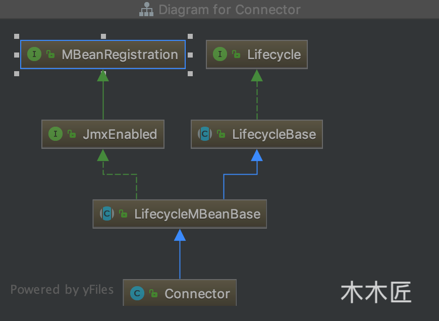 我们看到 Connector 继承了 LifecycleMBeanBase ,我们来看看 Connector 的最终继承关系: