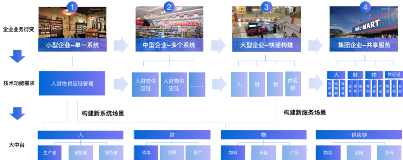 过去两年做了不少大型的中台项目,什么是中台?这篇文章就不多说了,自行百度一下,总而言之最后我得出了一个结论——企业什么样的人员组织架构就会什么样的系统技术架构。我们先以下一幅图: