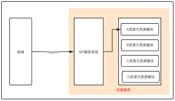 首先是前端发送一个请求,会携带着资源方的ID,这样后端服务解析到资源方ID,根据这个ID去调用对应资源模块的对应方法获取对应的资源数据。