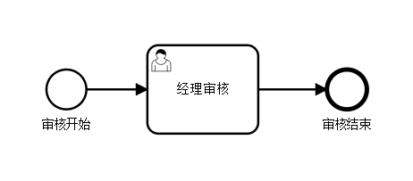 这里我们创建一个简单的流程,该流程中只有一个审核节点,并且不需要判断审核是同意还是拒绝。并且在审核节点我们设置了一个属性,将该节点的任务归属到 camunda-admin 这个组。