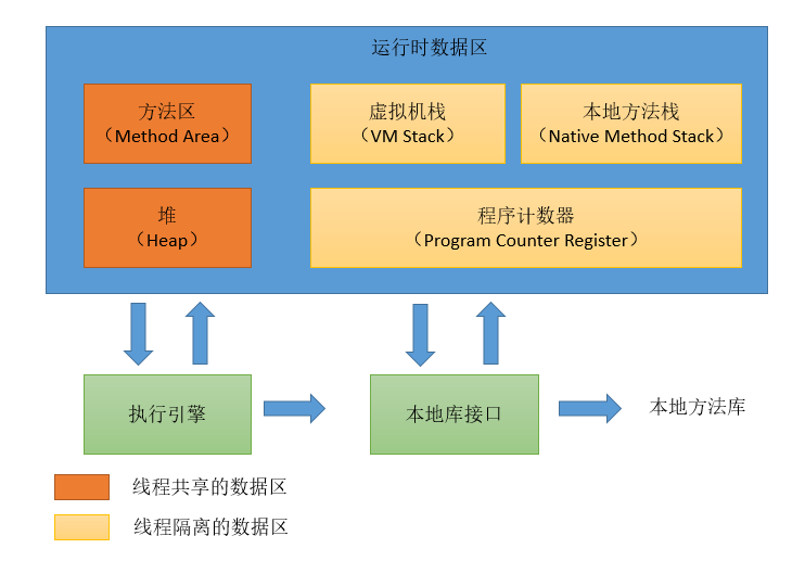 JVM运行时内存区域结构如下: