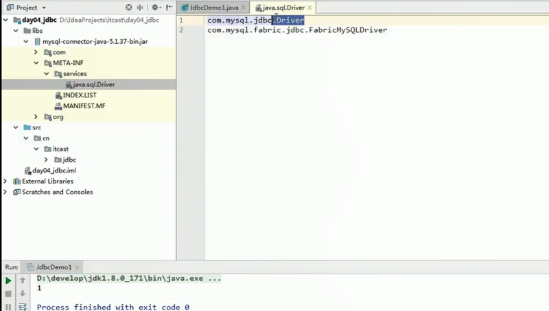注意:mysql5之后的驱动jar包可以省略注册驱动的步骤。