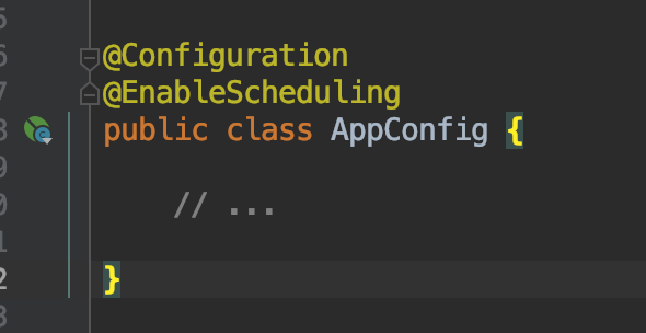 首先你需要开启这一功能:在任何一个 @Configuration 类上添加上 @EnableScheduling 注解: